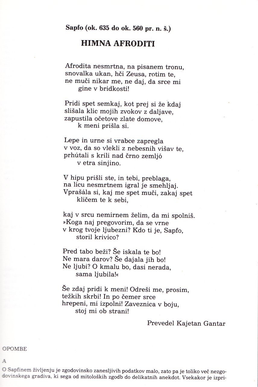 Sapfo – Himna Afroditi 08.05.2021 Gimnazijec z Lave Uncategorized Comments Off on Sapfo – Himna Afroditi Vir: Berilo IV Share this:FacebookX